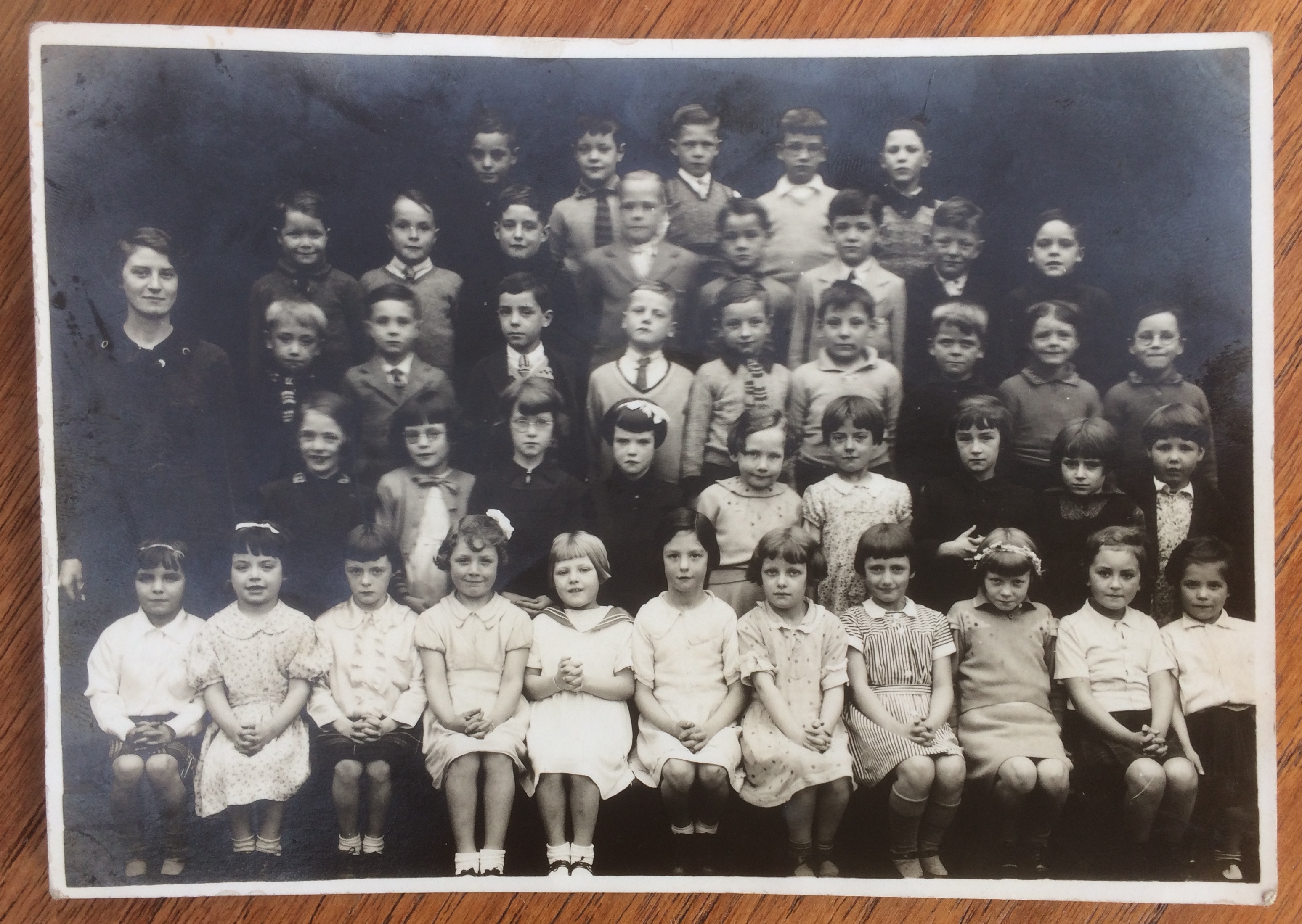 Once upon a time there were two little girls, Rena and Rita, born in Glasgow just a few months apart. They lived in Govan, within 100 yards of each other, started school on the same day and instantly became best friends. Every day they went to school arm in arm and came home arm in arm – except for once when they had a fight. But that was just for one day, and afterwards neither of them could even remember what it was about. They stayed best friends all the way through primary and secondary school until they left to start work at 15. Rita Fraser is second on the left of row 2 with the fringe and glasses, and Rena Marshall is in the front row, second from the right.