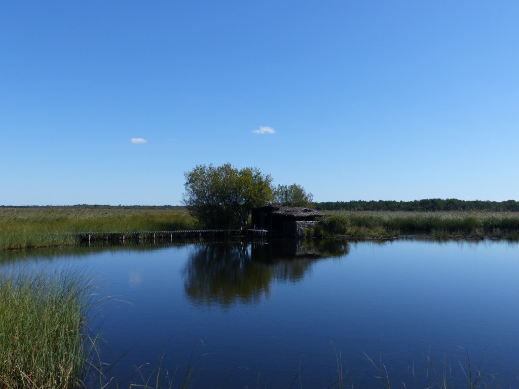 A few miles inland is Lac d’Hourtin-Carcans, the largest lake in France (who knew?) It’s surrounded by forests of pine and evergreen oak, with campsites and sailing schools. We stayed near the holiday village of Maubuisson on a campsite that was practically empty, apart from a few German and Dutch families – the French having departed before the end of August. In contrast to the ocean, the lake is, of course, (normally) completely calm. Ideal for young children, if a bit like taking a bath. The site also had a swimming pool, but there didn’t seem much point in using it when the lake lay less than 200 metres away.