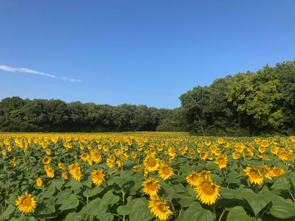 We ate out on nine or ten occasions – something we have rarely done since the first lockdown. Despite the start of the grain harvest, the countryside was green and beautiful, with huge fields of sunflowers in bloom. We had close encounters with hares and rabbits, red squirrels, bats, voles, beetles, bees (and the occasional hornet), butterflies and moths, and many species of birds. Much of the rest of the time was spent watching the football, I have to confess, as far as our poor reception of TF1 and our fast-shrinking internet data allowance would allow.