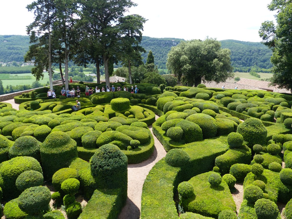 Though world-famous for its châteaux and prehistoric cave art, there was one attraction I particularly enjoyed. The gardens at Marqueyssac comprise 6km of pathways surrounded by over 150,000 hand-pruned box hedges. Snip, snip, snip… you hear it everywhere. What a boring job. As you wander along you get wonderful views far below of the Dordogne river, villages and châteaux – and especially of La Roque-Gageac (below right).