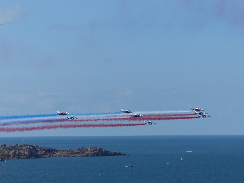 We would not have gone to Brittany had the forecast been unfavourable, but even so the weather can change very quickly. Fortunately it stayed warm and sunny for the whole of our stay. An unexpected bonus was seeing the Patrouille de France aerobatic team over Perros-Guirec.