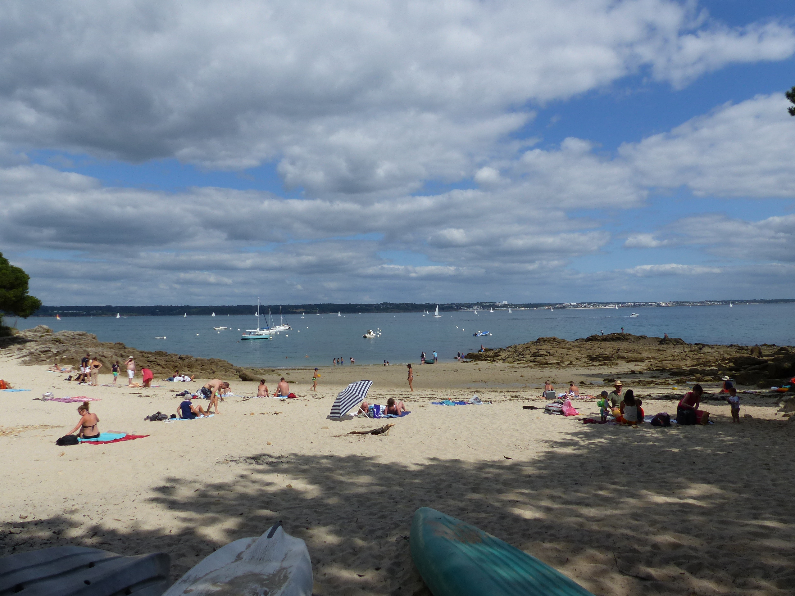 For some reason we had not thought to book anywhere to stay! After driving around all morning in a Citroën AX10 with no air-con in extreme heat, finding every campsite full, we finally found a tiny pitch at La Forêt-Fouesnant. Luckily we only had a tiny tent.