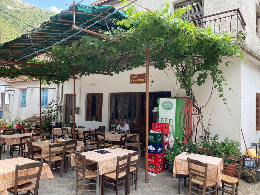 Near Kardamyli is the former home of soldier, spy and writer Patrick Leigh Fermor, now a museum maintained by Benaki Foundation but unfortunately not open when we visited! We did manage to peer over the garden wall. We stayed at Lela’s Rooms, above the taverna. Lela used to cook for Patrick and Joan Fermor.