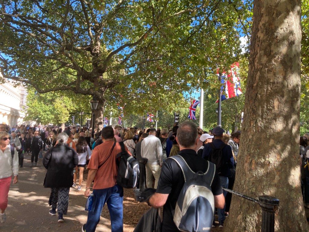 We took the train up to Blackfriars last Saturday and strolled past the 16-hour queue to see the coffin in Westminster Hall, but had already decided not to join it. The queue became a tourist attraction in itself.