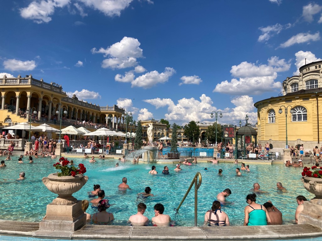We popped into the stunning opera house on the way back to our room. Then, after lunch, to the wonderful Széchenyi thermal baths. Not just a swimming pool, but a suite of different pools, both indoor and outdoor, ranging from a very hot tub to a freezing cold plunge pool. And with a bar! What a great way to relax on a summer’s afternoon. There are several thermal baths like this in Budapest, open all year.