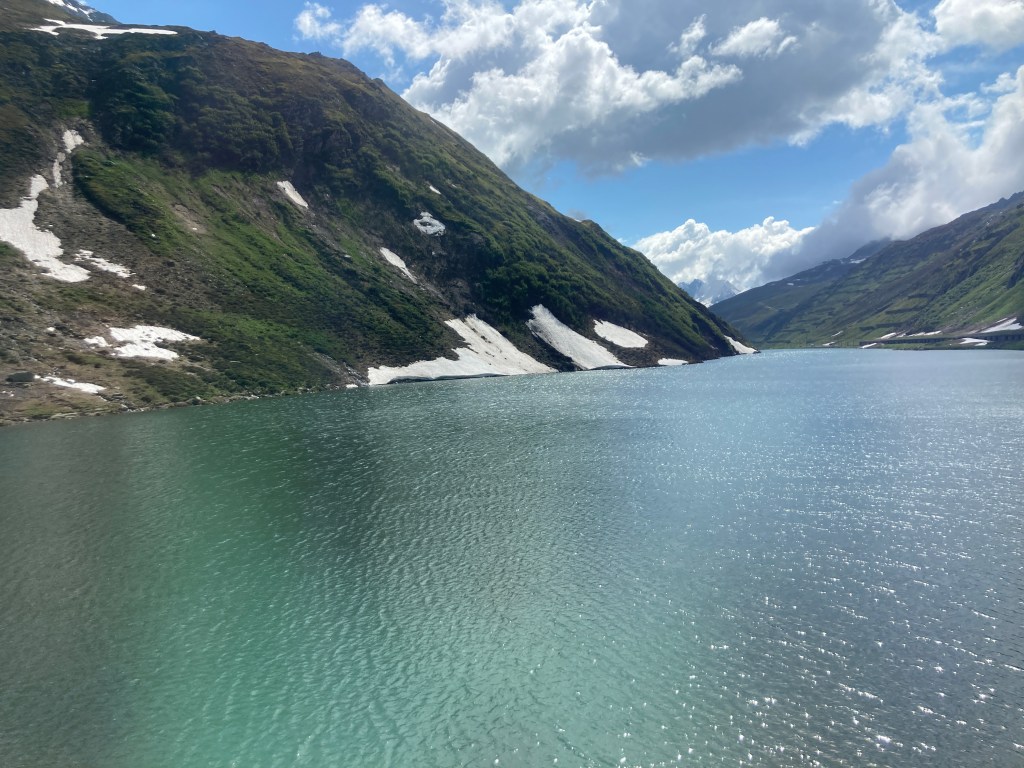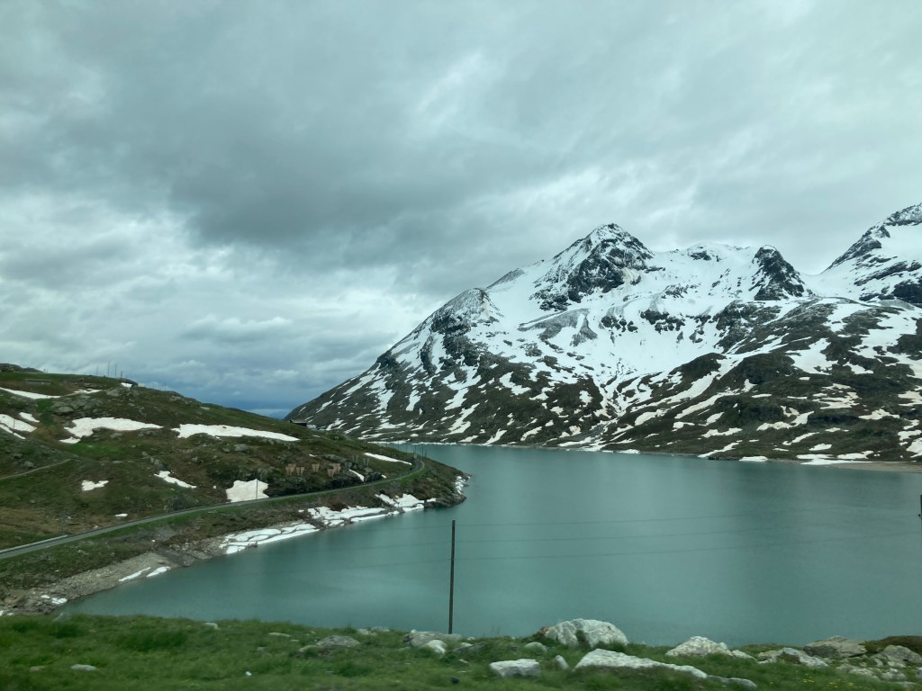 Back at the station we had to take another replacement bus. We climbed on a good road over enormous mountains and past chilly lakes. The views were astounding, although travelling by train is much more relaxing.