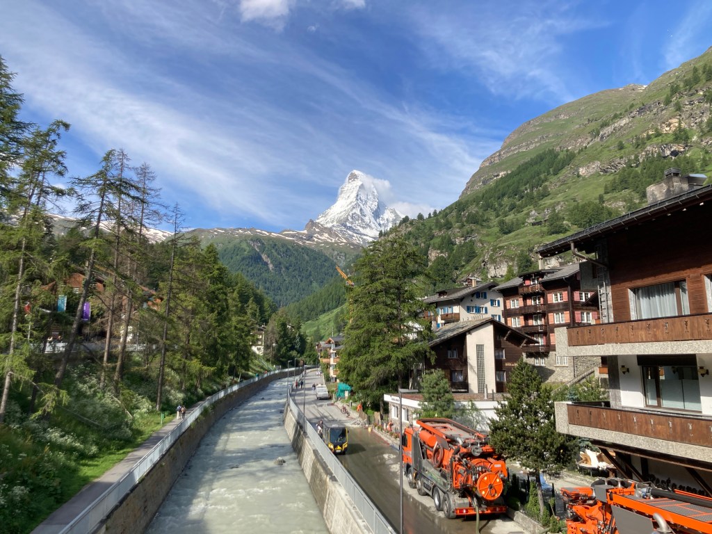 But once more, flood damage to the track necessitated a change of itinerary. We left the train at Brig and took a replacement bus to Täsch before getting back on the train for the final half an hour or so. Despite all the disruption, we arrived at Zermatt ahead of schedule.