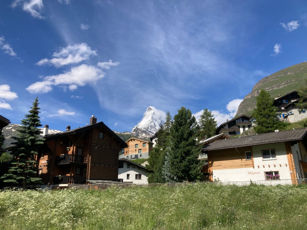 We wrapped up the evening with a glass of wine on our balcony at Hotel Bahnhof. The Matterhorn hid behind the clouds as the temperature dropped.