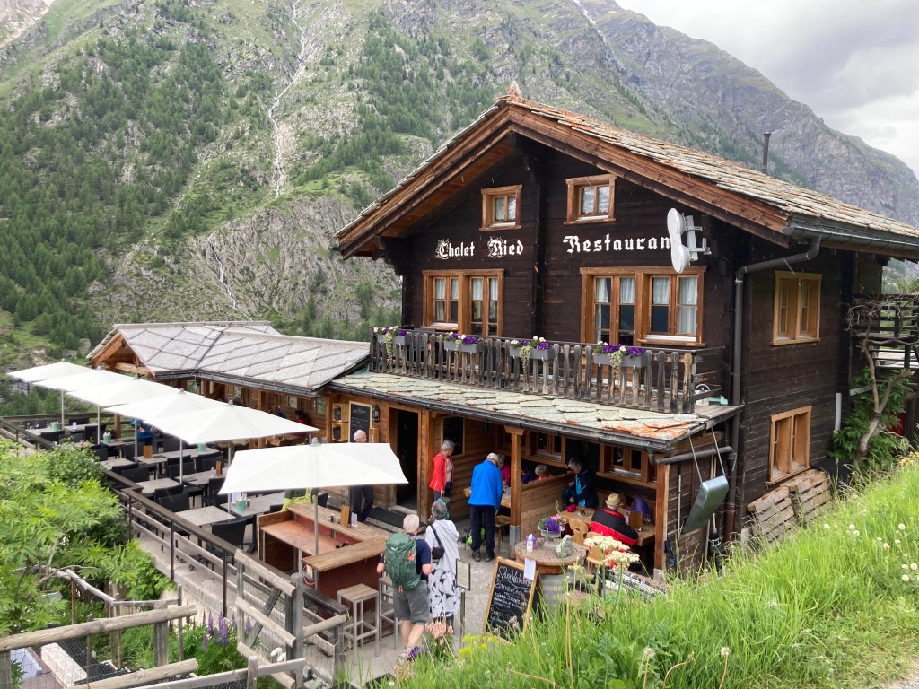 After lunch we visited the Matterhorn museum, which was informative but packed. Once again we dithered; we considered taking the funicular up to Sunnegga but had left it too late. The Gornergrat Railway was closed following the storms, which was a great shame but on the plus side saved us 280 CHF. We headed to the Grand Hotel Zermatterhorn and spent half our savings on negronis. A pleasant and talented young woman from the Philippines was crooning classic lounge numbers. I requested “Fly Me to the Moon” since no-one else was forthcoming with suggestions.