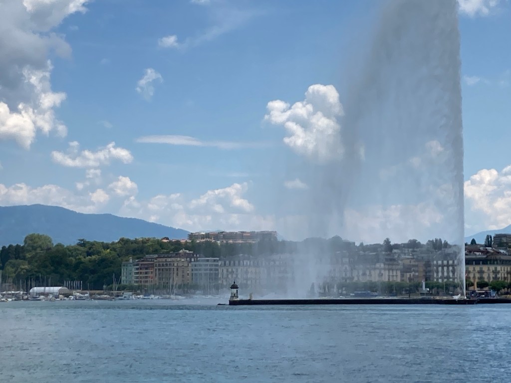Anyway, we boarded the 08:13 to Täsch, then a replacement bus to Visp, from where they were superb views over a ravine. Then back on the train… but unscheduled track maintenance meant we had to disembark at Aigle! For Switzerland it was remarkably chaotic. We passed the time with a beer at the café opposite the station before getting the 12:06 to Geneva, with views of Lake Leman as we approached the city.