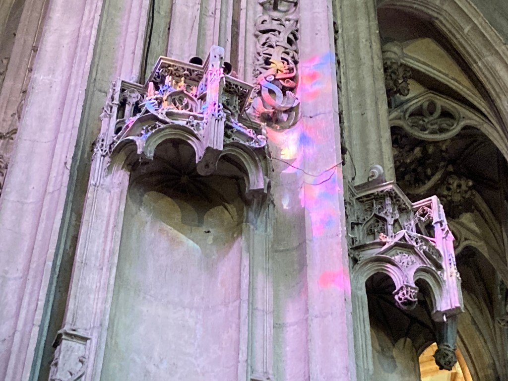 We visited the magnificent Gothic cathedral dedicated to Saint-Jean then took the funicular (another one!) to the basilica, with its views over the city. We descended through rose-scented gardens to a substantial dinner at Bouchon Les Lyonnais.