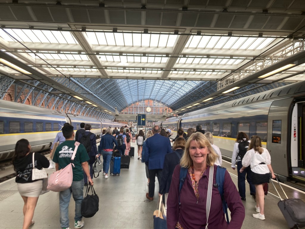 And, finally, the 16:12 Eurostar to London St Pancras. We sat behind an Englishwoman who did not stop talking to her grandchildren for more than 30 seconds. I so wanted it to be like Austria, where silence rules on public transport. I needed a kip. We arrived at the chunnel entrance and she finally shut up.