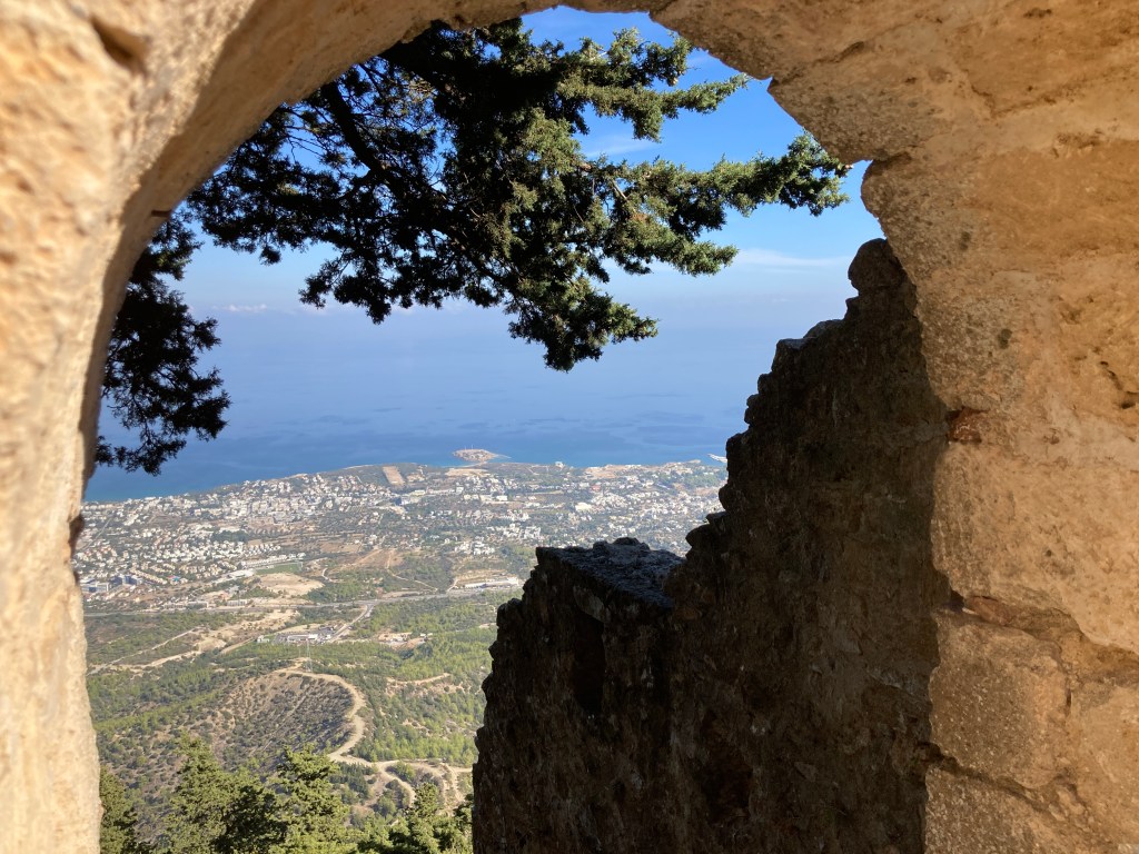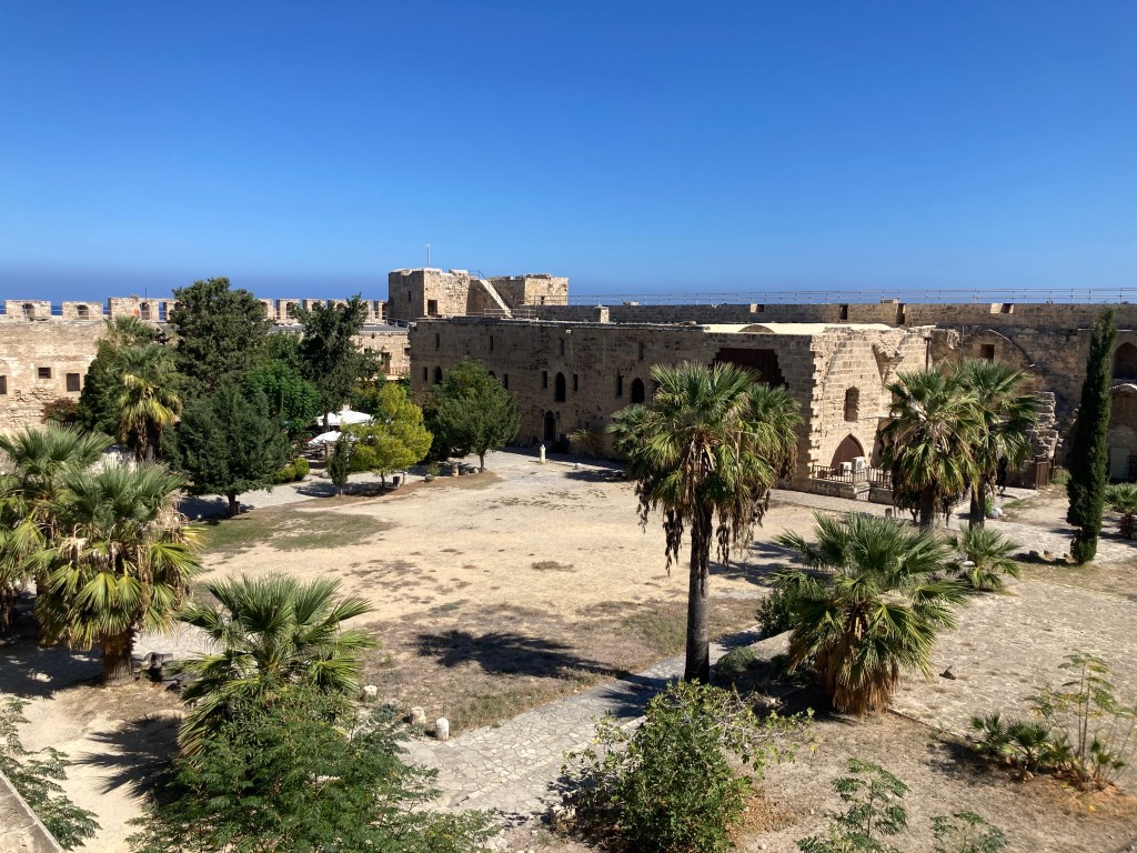 The ruined Crusader castle of Saint Hilarion can be reached in 20 minutes by a dual carriageway south over the mountains (with a rather scary right turn across the oncoming traffic). It was busy with Dutch and German tour groups and it is a long walk to the top, but it is worth exploring and there is a superb view down to the coast. Note that you have to drive through an army shooting range to get there! Don’t stop to take photos.