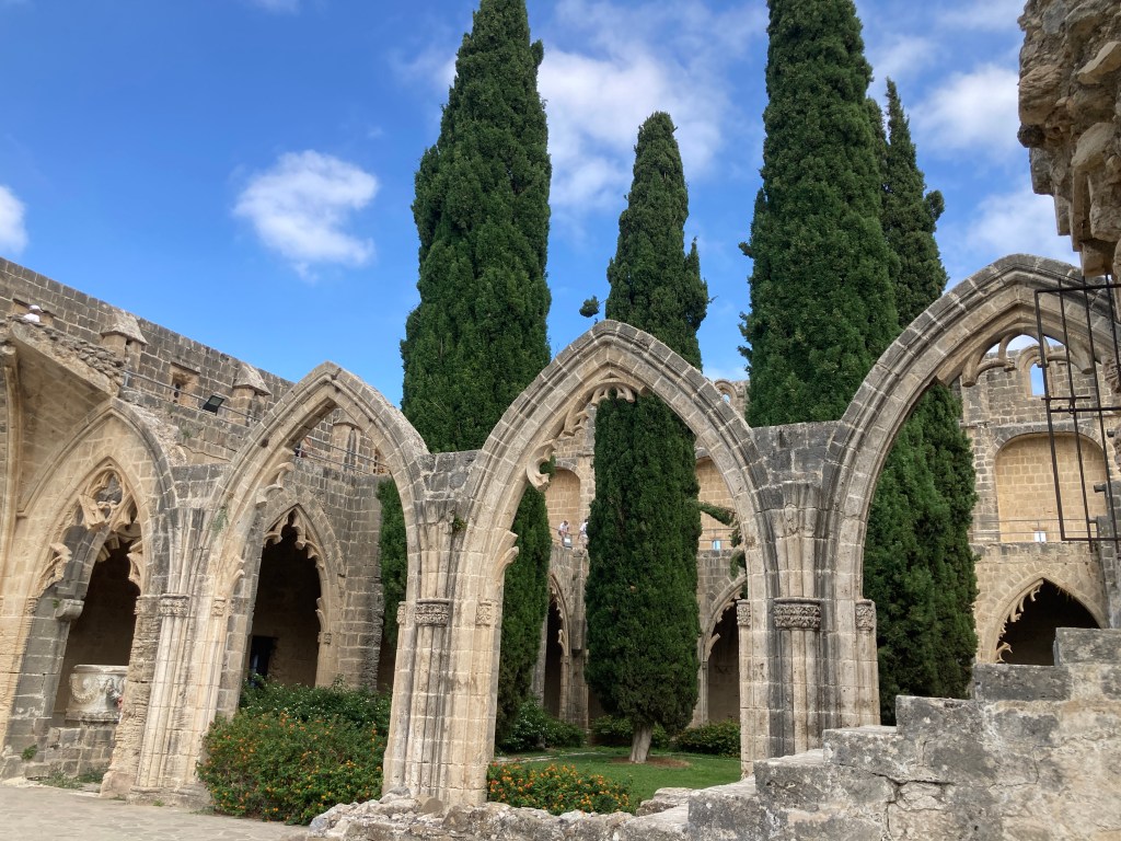 The coast road east from Cirne takes you gradually uphill to the medieval French (Lusignan) abbey of Bellapais. Having been warned that the road was poorly sign-posted and easy to miss we opted to take a minibus.