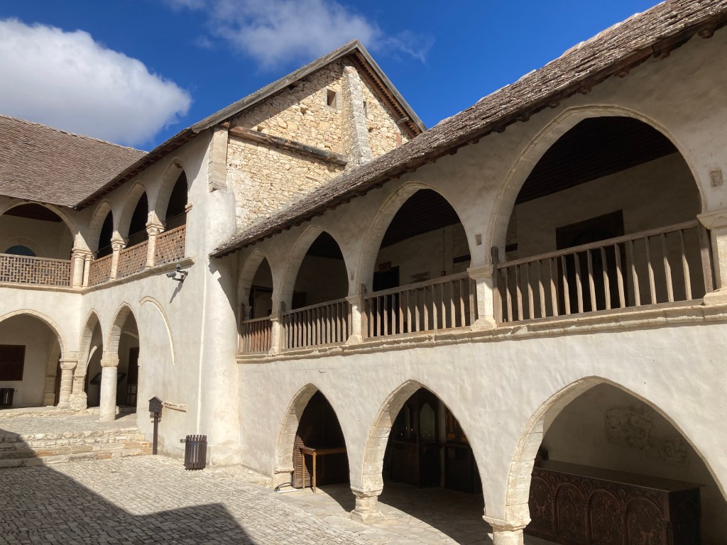 The next day we visited the impressive 16th-century Timos Stavros (Holy Cross) Monastery in Omodos – a well-touristed but lovely place – then ascended past the famous wine villages to Troodos, where we took a short walk.