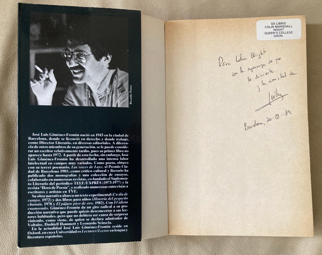 But in January 1986 I started a job at the British Library. José Luis found a new job too, and it was pretty clear that the “project” he refers to on the flyleaf of his poetry anthology El largo adiós was never going to happen. However it is nice that he had thought I was up to the job.