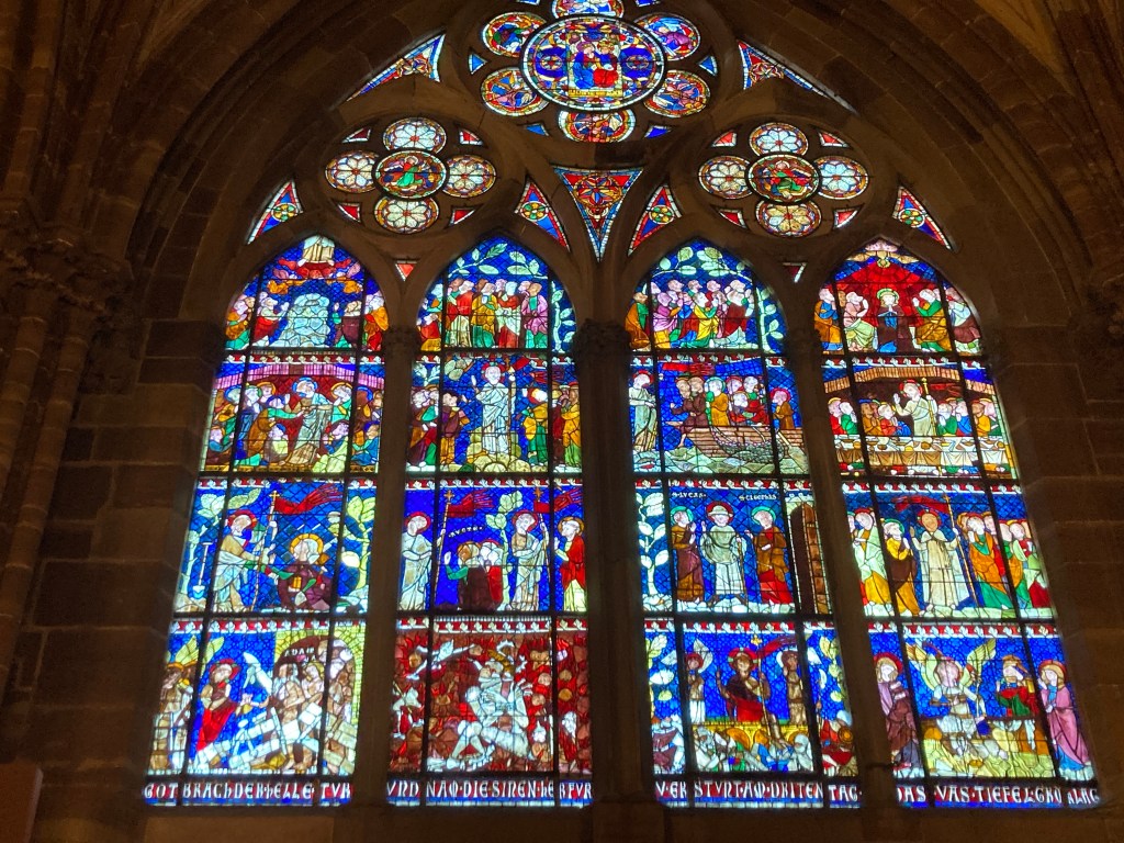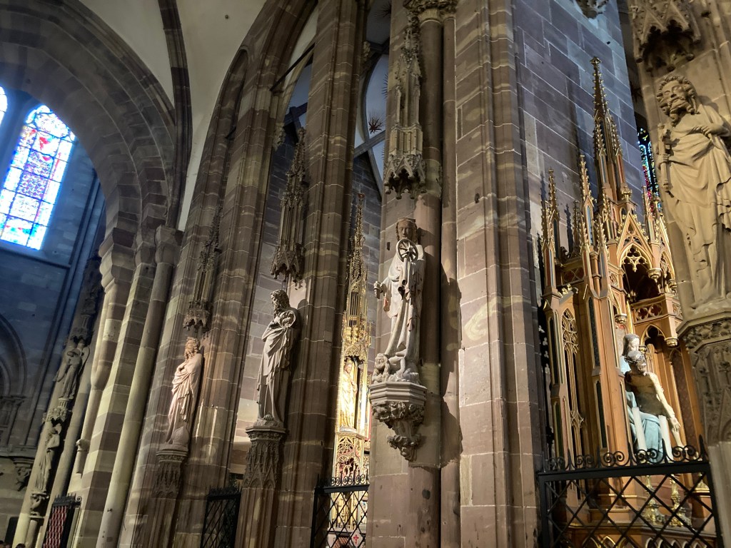 The rose window, the medieval stained glass, the pillar of the angels, the pulpit, the astronomical clock, the crypts … Unfortunately a service was about to start soon after we entered, so we were chased out sooner than we would have liked. This is always a risk, especially if you turn up in the late afternoon.