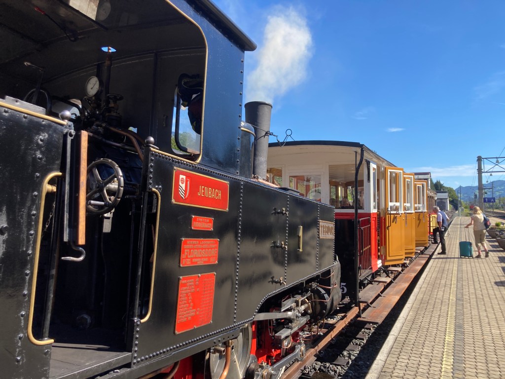 A quick coffee at the station, then the 09:44 to Jenbach, from where we could have taken a free bus to the village of Pertisau am Achensee (the largest of the Tyrolian lakes). But since it was another beautiful day we decided to go on the considerably more expensive Achenseebahn, the oldest steam cog railway still operating anywhere in the world.