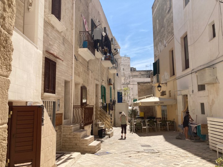 We barely had time to buy a coffee and a sandwich before boarding the 06:53 Frecciarossa to Monopoli. From Venice the line cuts inland, south-west towards Bologna, linking some of the north’s major cities, before rejoining the coast at Rimini. It’s a long journey but there are worse views than the Adriatic coastline.