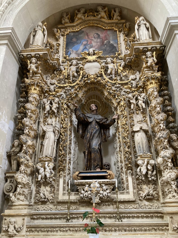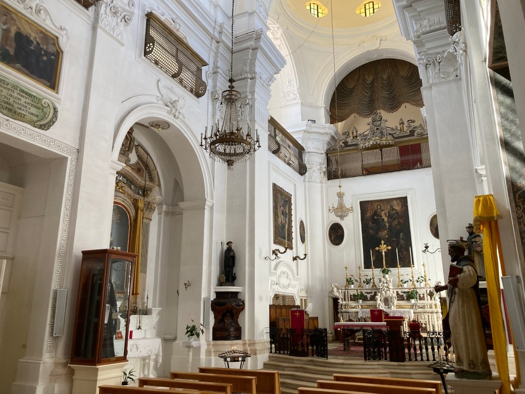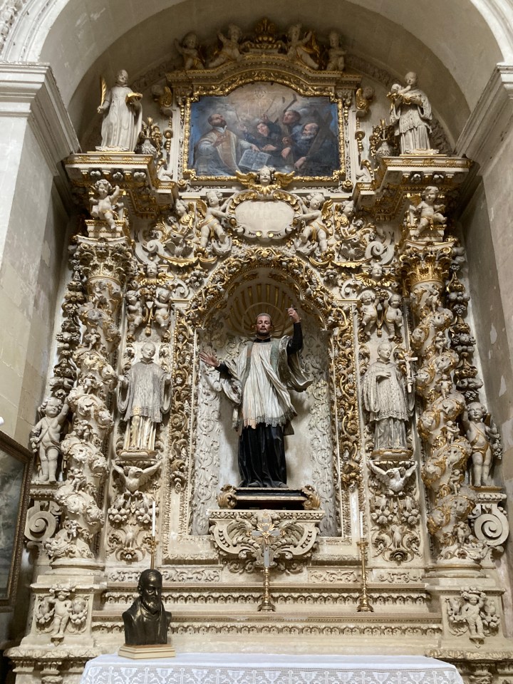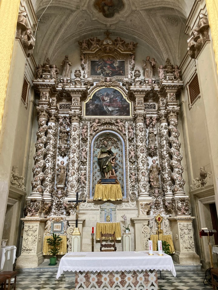 Time for a late lunch. I tried a local pasta dish: orecchiette with a sauce of aubergines, flaked almonds and tomatoes – probably North African-influenced. The afternoon was spent visiting the duomo and five (I think) other astonishingly ornate Baroque churches. Those that made the greatest impression were San Matteo and Santa Chiara, but all deserved more attention than we were able to give them.