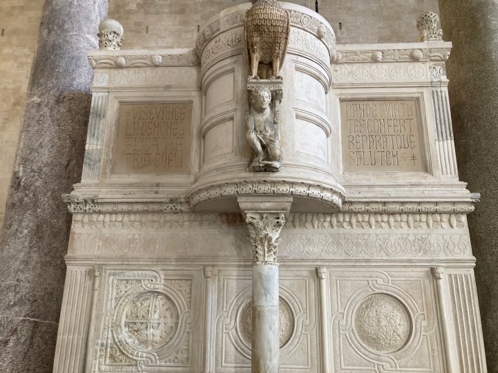 Close by is the Cattedrale di San Sabino and its museum, which displays a fine range of paintings and ecclesiastical knick-knacks – and, notably, a magnificent manuscript of the Exsultet. Outside a well-heeled wedding party was gathering. We hurried in before it closed.