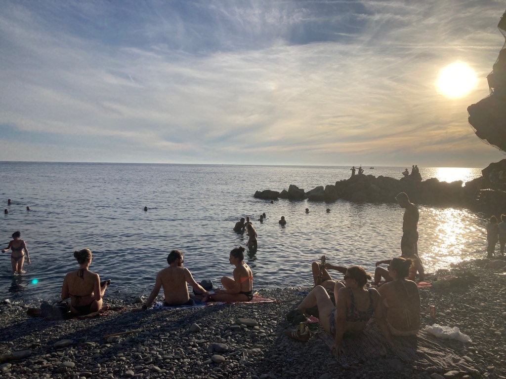 We passed beautiful Vernazza, got off at Monterosso for a walk and a gelato then cruised back. As the sun went down at Riomaggiore we joined the crowd for a swim on the stony beach. The rocks were hot and the water delightfully cool.
