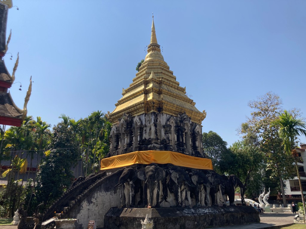 Determined to see the National Museum after Tuesday’s disappointment we made a more productive return visit then took a taxi to Wat Chiang Man, which dates back to the late 13th century. It has a chedi notable for the brick-and stucco-elephants that appear to support it.
