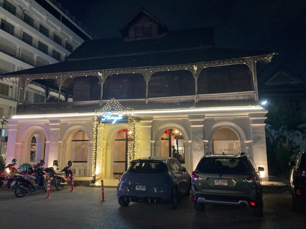 Our final day in Chiang Mai was hot and humid. We saw a bit more of the town in the afternoon, visiting important attractions such as the Red Lion British pub, before meeting Graham, Kom and their guests (Jim Stent of the Siam Society and Belinda Stewart-Cox, elephant conservationist) at the Panyo restaurant. Formerly known as Luang Yo House, this is one of the finest restored colonial buildings in the city.